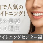 「福山でホワイトニングをしたいけど、どこがいいの?」「福山駅周辺で効果を実感できるお店は?」 福山市内には歯科医院や美容系サロンなどさまざまな選択肢があります。しかし実際には、「思ったより白くならなかった」と感じている方 […] -
